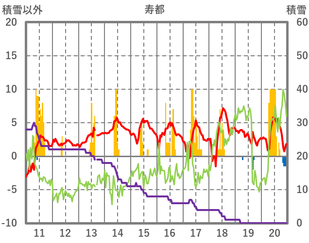 | 日 | 時 | 気温 | 降水 | 風向/風速 | 日照 | 積雪 | 降雪 |