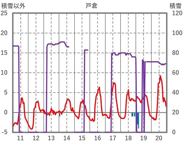 | 日 | 時 | 気温 | 降水 | 風向/風速 | 日照 | 積雪 | 降雪 |