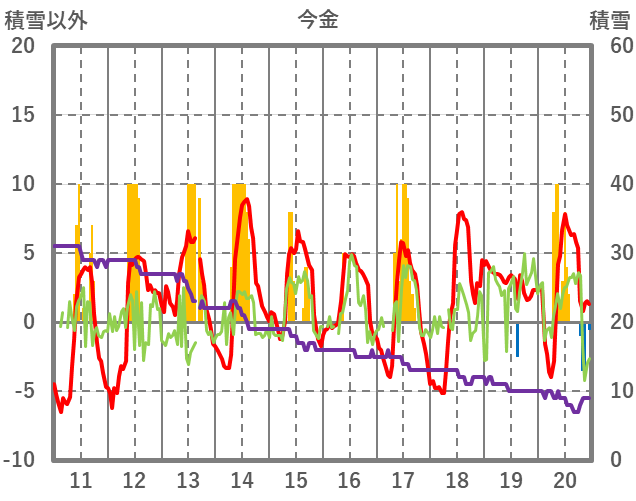 | 日 | 時 | 気温 | 降水 | 風向/風速 | 日照 | 積雪 | 降雪 |