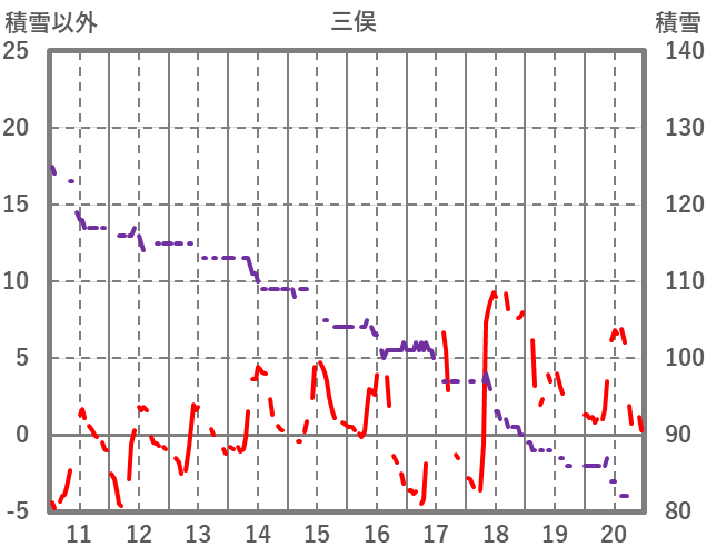 | 日 | 時 | 気温 | 降水 | 風向/風速 | 日照 | 積雪 | 降雪 |