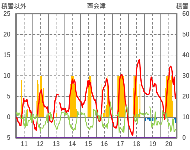 | 日 | 時 | 気温 | 降水 | 風向/風速 | 日照 | 積雪 | 降雪 |