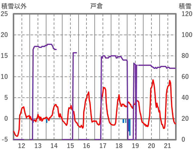 | 日 | 時 | 気温 | 降水 | 風向/風速 | 日照 | 積雪 | 降雪 |