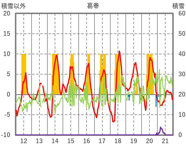 | 日 | 時 | 気温 | 降水 | 風向/風速 | 日照 | 積雪 | 降雪 |
