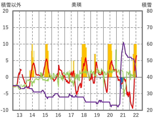 | 日 | 時 | 気温 | 降水 | 風向/風速 | 日照 | 積雪 | 降雪 |