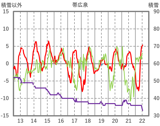 | 日 | 時 | 気温 | 降水 | 風向/風速 | 日照 | 積雪 | 降雪 |
