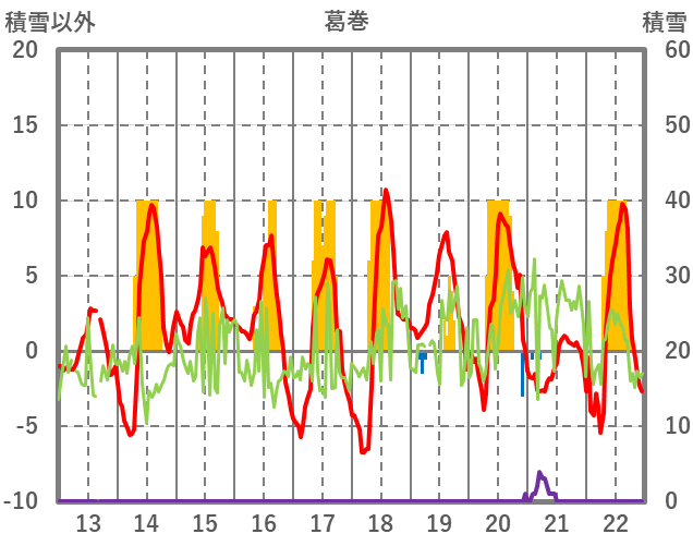 | 日 | 時 | 気温 | 降水 | 風向/風速 | 日照 | 積雪 | 降雪 |